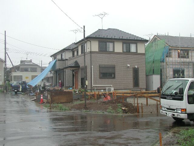 分譲地内の様子です。この日はあいにくの雨でしたが、作業している人がいます。ごくろうさま。