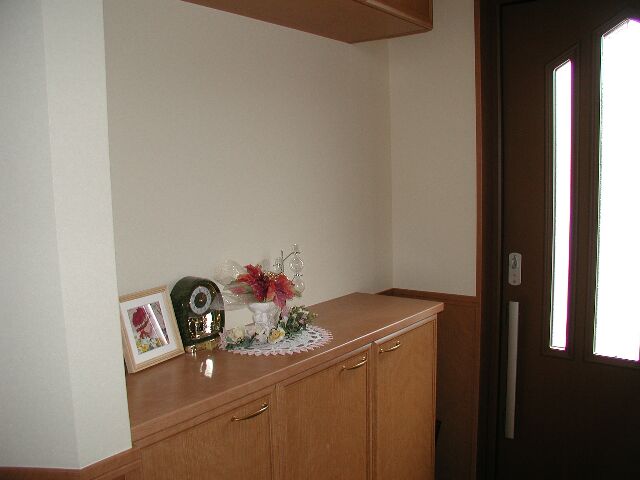 玄関の様子です。心配された下駄箱とドアの間のスペースですが、どうにか傘を入れる分は確保できました。