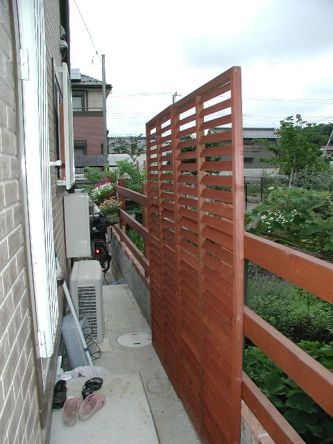 勝手口の前にはラティスを付け、目隠しにしました。