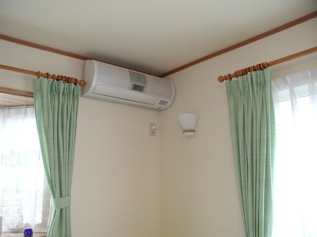 リビングのエアコンです。取り付けるときにコンセントの電圧が200ボルトになっていなくて困りました。結局、その場で工事をしてもらいましたが、ちょっと痛い出費となりました。