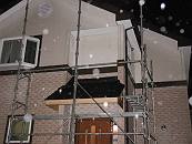 2003-10-15 07:41:20 翌日朝の様子です。今日は側面に壁と同じサイディング材が貼られ、屋根底面の空洞はふさがれます。 |