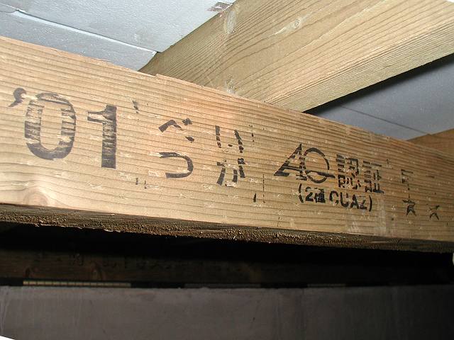 これは大引きです。この上に乗っているのが根太ですね。ここの部分がこすれ合って音が鳴っているのではないかと思っているのですが。大引きには「べいつが」と書かれています。米栂ですね。
