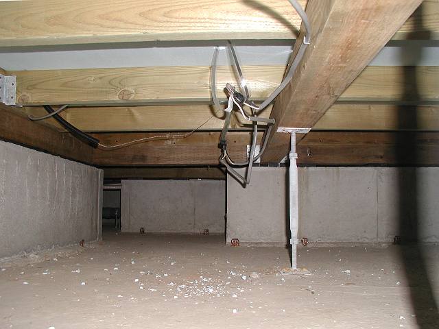 床暖房が施工されているので、電源コードなどが見えています。下に落ちているくずみたいなものは、断熱材です。おそらく床暖房の設置中に落ちたものでしょう。