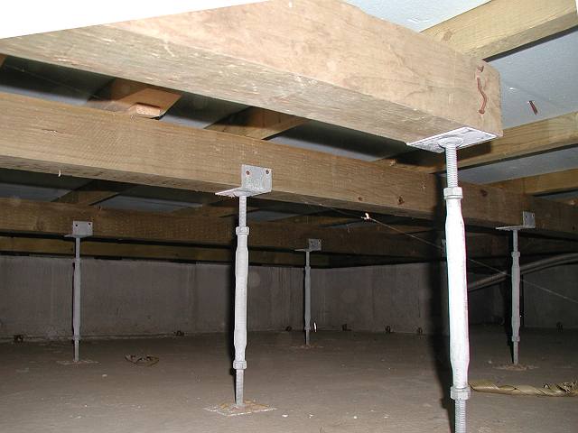和室の床下です。手前に見えている束と大引きは和室にピアノを置くために補強工事をしてもらった部分です。よく見ると奥の大引きと床の間にはくさびが打ち込んであります。こういうのは正しい施工なのでしょうか。