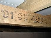 yuksit2.jpg 2005-04-16 これは大引きです。この上に乗っているのが根太ですね。ここの部分がこすれ合って音が鳴っているのではないかと思っているのですが。大引きには「べいつが」と書かれています。米栂ですね。 |
