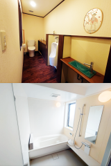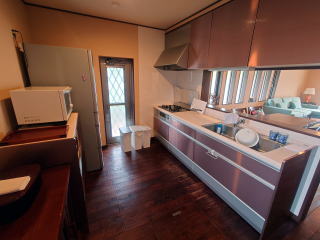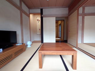 |  ●和室三室 ●リビングダイニング ●室内テラス ●ウオークインクローゼット ●お風呂・トイレ ●洗濯機 ●駐車場 ●無料Wi-fi ●無料アメニティ ボディソープ、シャンプー、トリートメント バスタオル、フェイスタオル、ドライヤー 歯ブラシ、カミソリ、コットンセット ●基本的な調理器具はご用意しております。  |
