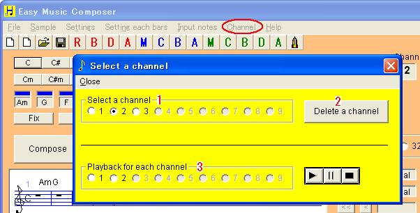 Check a check box of channel and then push the playback button to listen to a music of each channel.