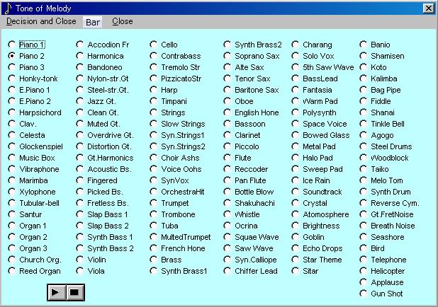 On the "Tone of Melody" screen, check to musical instrument you want to use.