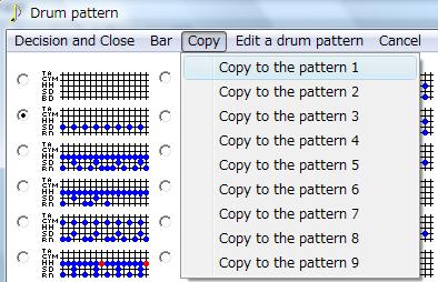 Now, the drum pattern which attached the check is copied to "Pattern 1".