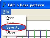 On the "Edit a bass pattern" screen, Go to Menu->"File"->"Save As...".