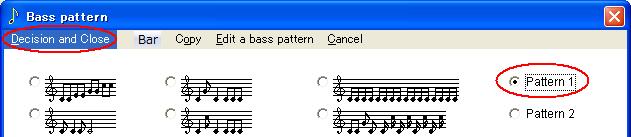 On the "Bass pattern" screen, click "Pattern 1" and click "Decision and Close".